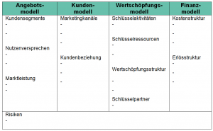 - die Ausarbeitung von Geschäftsmodellen mittels Business Model Canvas.